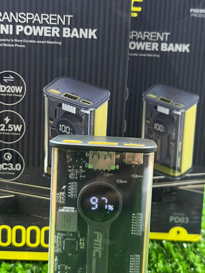 Power Meets Style ⚡ — Transparent Mini Power Bank PD03 (10000mAh)